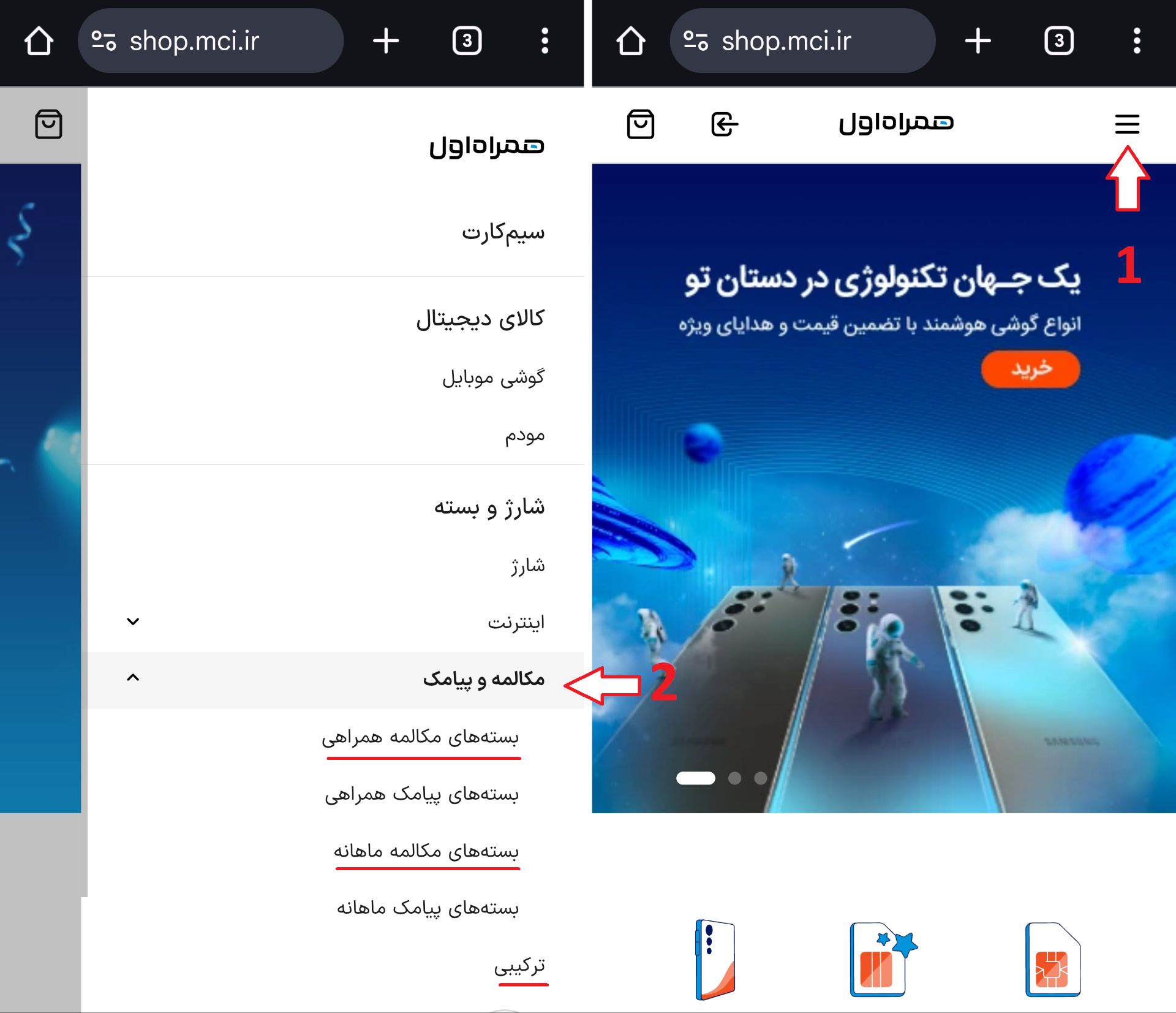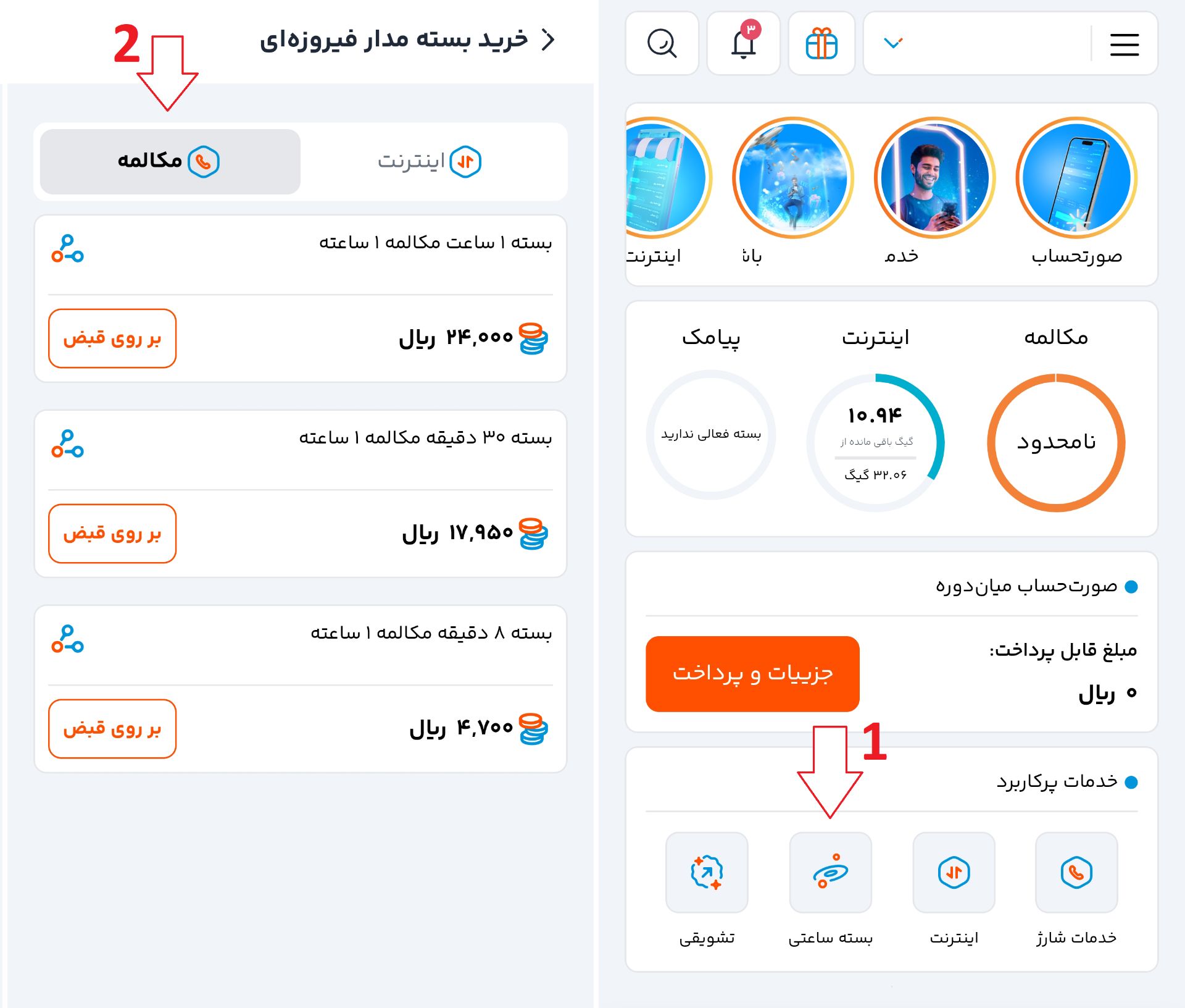 خرید بسته مکالمه از اپ همراه من