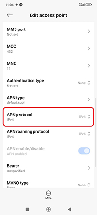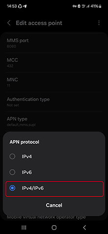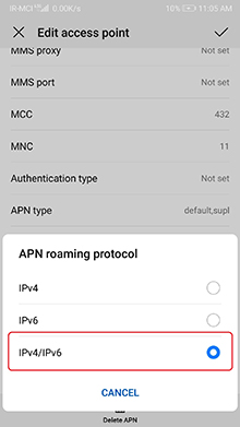 APN Protocol را روی گزینه IPV4/IPV6 تنظیم کنید.