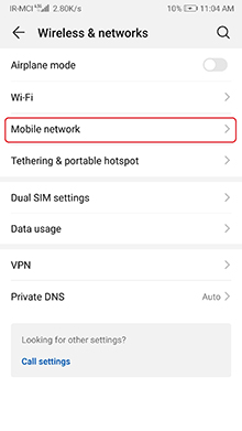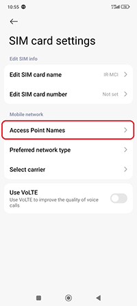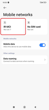 گزینه IR-MCI سیم کارت مورد نظر را انتخاب کنید.