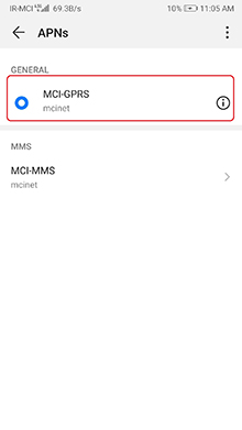 گزینه MCCI-GPRSرا انتخاب کنید.